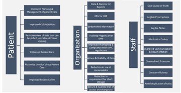 A CMS allows for the delivery of improved and safer patient care through digitisation of the patient journey. It aims to benefit the oganisation, staff and patients through support of best practice and optimising patient safety.